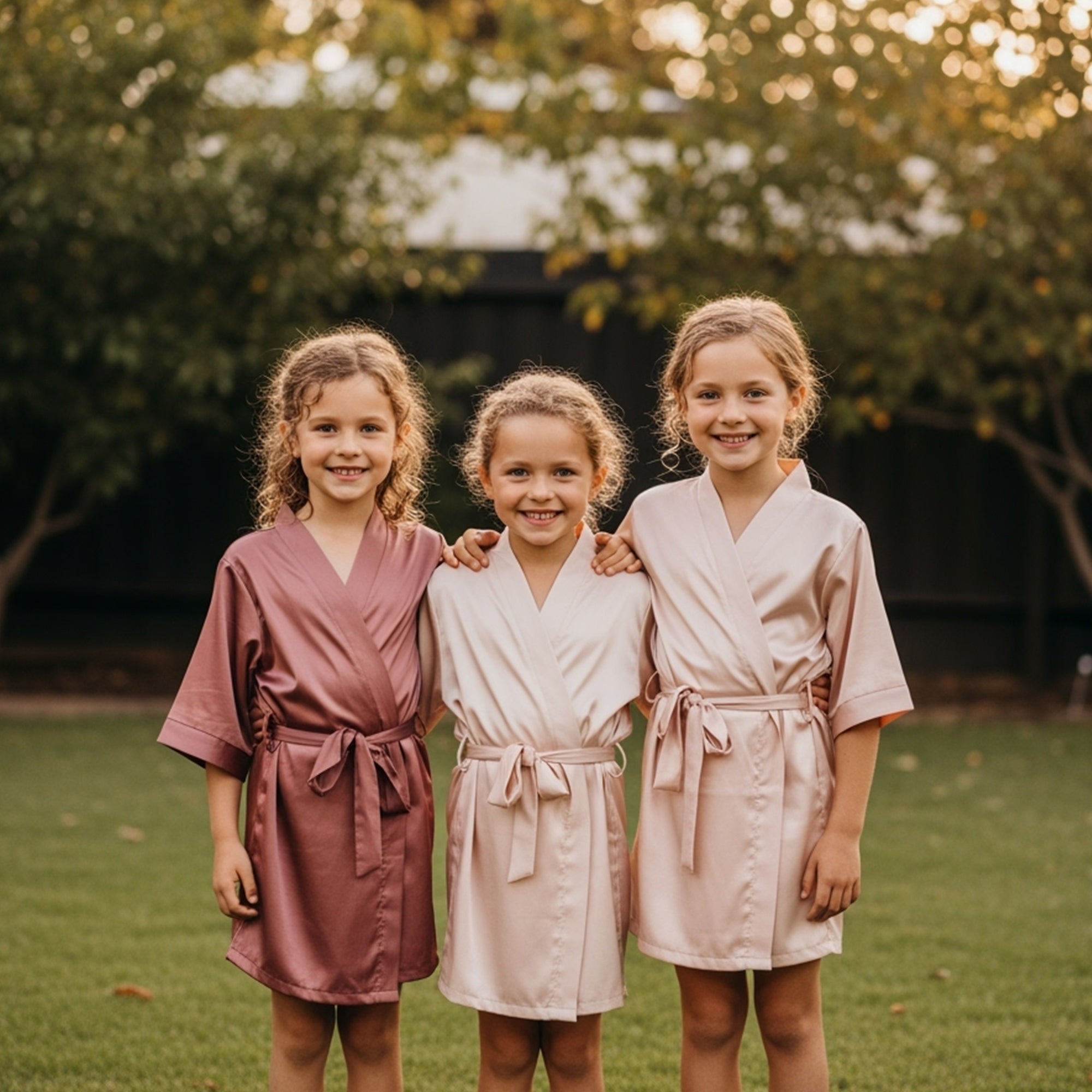 Make every little one feel extra special with our Kids Personalized Satin Robes. Crafted from premium silky satin, these robes offer a soft, luxurious touch that drapes beautifully and feels as comfortable as it looks. Available in charming pastel and blush tones, they’re perfect for flower girls, wedding mornings, spa parties, and birthday celebrations adding a touch of elegance and fun to every moment.