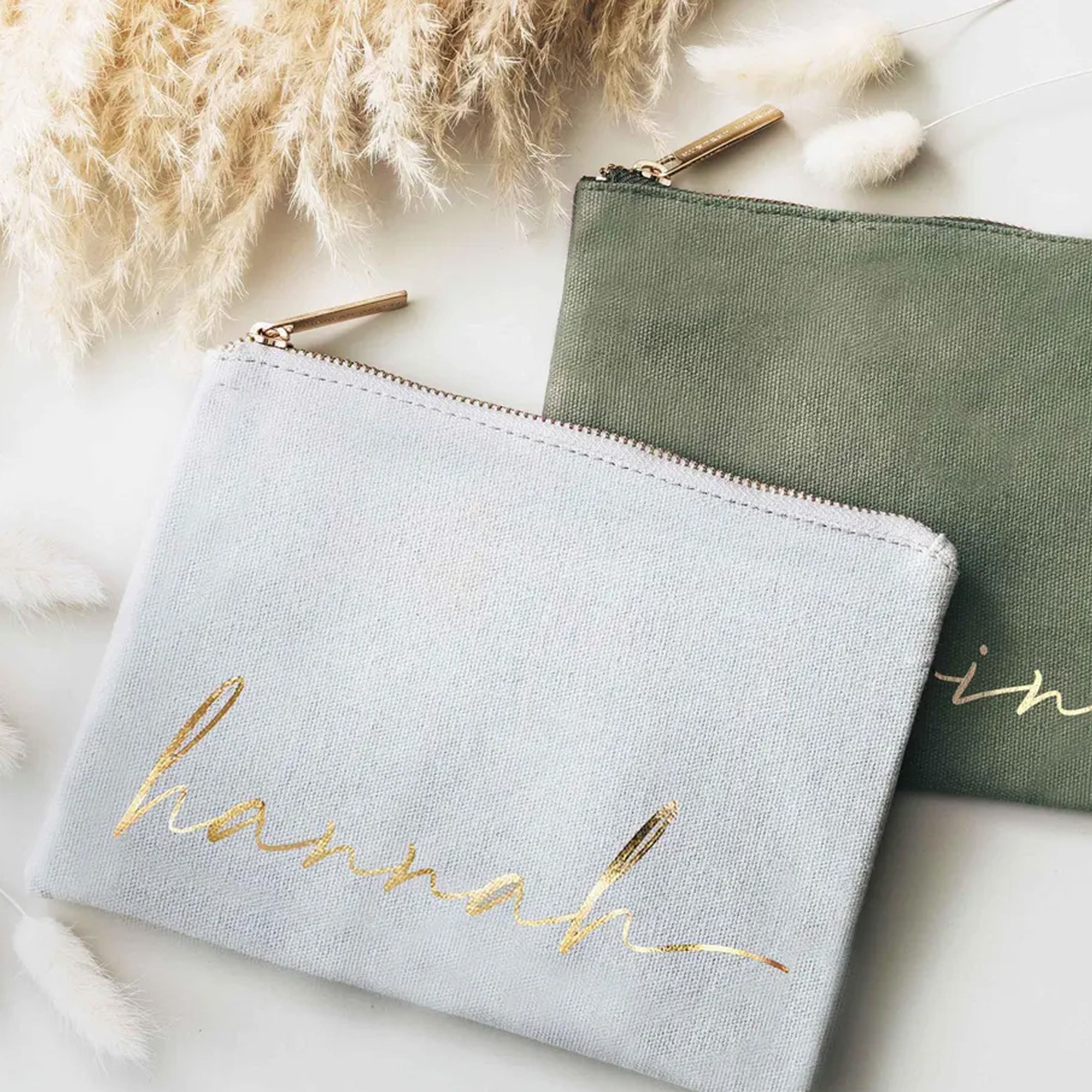 With personalized makeup bags, you may assist your bridesmaids in keeping their beauty necessities organized. For an entertaining and useful gift, use their names or a sweet saying.